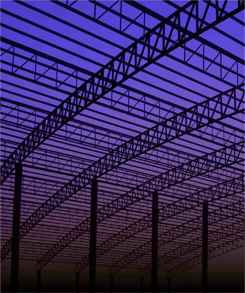 The frame is constructed by bolting the end plates of the connecting sections together. All steel sections and welded plate members are designed cohesively based on the latest international codes and standards, such as AISC, AISI, MBMA, and IS, to ensure compliance with all client specifications.